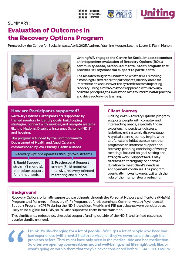 Summary – Evaluation of Recovery Options Program Outcomes